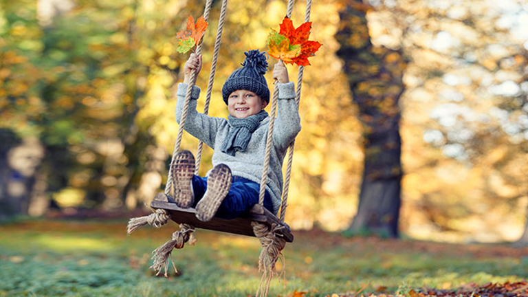 Name der Datei: Kind schaukelt im Herbst